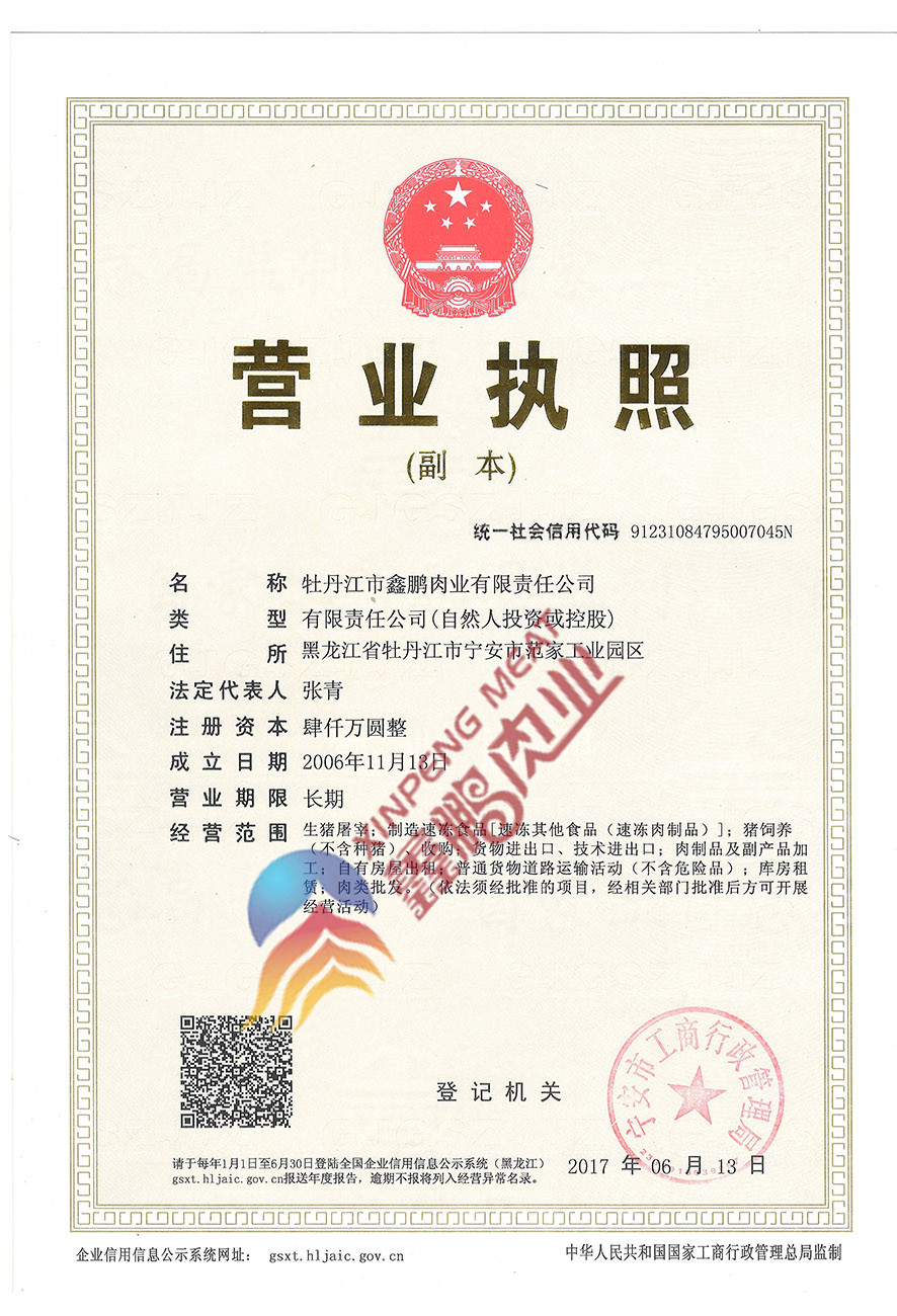 牡丹江市鑫鵬肉業(yè)有限責(zé)任公司